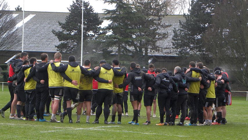 Les absents étant très peu nombreux, le groupe présent à l'entrainement est large et pour la future équipe, les maux de tête font se multiplier pour le staff. La neige était présente au tout début de l'entrainement mais elle s'est vite arrêtée et les joueurs ont pu effectuer la séance sans la neige mais avec le froid. Les entraineurs ont divisé l'équipe en trois, pendant que deux s'opposaient, le troisième faisait du physique. De retour d'Ecosse, Demba Bamba retrouvait ses coéquipiers de club avant de repartir à Marcoussis dans quelques jours pour préparer la réception de l'Italie. Les joueurs ont mis du rythme dans les oppositions pour être prêts samedi et ne pas souffrir de la pause "6 Nations". Ils veulent surtout enchainer à domicile et pourquoi pas faire la bonne opération en bas de tableau. La victoire est ciblée avant deux gros déplacements consécutifs.