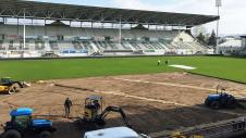 Faisons un point pelouse avant de commencer. Il y a une semaine, Brive a commencé les travaux pour changer un quart de pelouse. Si les travaux sont faits, il reste le plus important : mettre la pelouse qui se fera ce mercredi.