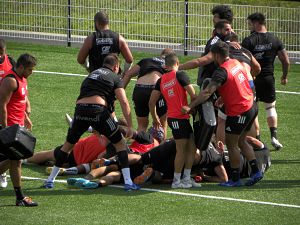 Après avoir bénéficié d'une semaine de repos, les brivistes avaient repris la semaine dernière mais cette fois, on rentre dans le vif du sujet. Et pas le temps de s'endormir car le match est vendredi soir donc on travaille vite mais bien. Si l'infirmerie s'est à nouveau remplie, le groupe à disposition de Jeremy Davidson et de son staff est en nombre et en qualité. Peet Marais poursuit son travail avec le préparateur physique tandis que ses coéquipiers enchainent les phases de jeu durant la séance collective. Il y a du rythme, de l'application mais surtout on travaille tous les aspects du jeu, du coup d'envoi au coup de sifflet final. Pour boucler la séance de l'après midi, il y a du travail en petits groupes : les avants sur la touche, les 3/4 sur le jeu au pied, Thomas Laranjeira reprend ses marques sur le terrain d'honneur. James Coughlan travaille la défense 1 contre 1 avec Enzo Hervé et David Delarue. Plusieurs joueurs (Doge, Kamikamica, Narisia, Tuicuvu, Tskhadadze, Cerqueira) ont eu un petit rab de travail physique et d'explosivité.