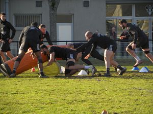 L'entrainement a été énergique à l'image de Jeremy Davidson, bien motivé à donner de la voix et à ne rien laisser passer à son groupe. Il veut regouter à la victoire à l'extérieur et si les joueurs mettent autant d'énergie que lui, ça va le faire ! Les joueurs ont bien bossé sur un terrain mi-soleil mi-ombre, la séance s'est malheureusement terminée sur un gros coup de froid. A quelques minutes de la fin de la séance, Steevy Cerqueira est resté au sol après avoir porté le ballon et avoir crée un ruck. Touché au genou droit, il est resté de longues minutes au sol, entouré du staff technique, du kiné et de Johan Snyman (très présent auprès du groupe malgré sa blessure, comme un coach adjoint). On va croiser les doigts pour que cela ne soit pas trop grave mais vu ses cris de douleur, ça ne sent pas bon.