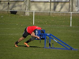 Malgré la victoire, le groupe briviste est loin d'être au top de sa forme. Ainsi, Simon-Pierre Chauvac, James Johnston, François Da Ros, Jan Uys et Didier Casadéi n'étaient pas présents en ce début de semaine. De retour de suspension, Otar Giorgadze est avec la Géorgie. Au rayon des bonnes nouvelles, Richard Fourcade et Stuart Olding reprennent avec le groupe et postulent pour Bourg en Bresse. Rory Scholes a travaillé à part. Est ce que la victoire contre Vannes et le jeu déployé ont-ils donné des ailes aux brivistes en tout cas, les enchainements effectués lors de l'entrainement ont été de qualité. Cela a été réglé comme du papier à musique, ce qui n'a pas toujours été le cas à chaque entrainement (provoquant de grosses colères de Jeremy Davidson). Tandis que la séance était terminée, plusieurs joueurs se sont astreints à du travail spécifique. En compagnie de Luka Goginava, Karlen Asieshvili travaille sa condition physique. Il se sent bien après son match de reprise même si sa prestation n'était pas ce qu'il attendait. Le genou a tenu (malgré un plaquage subi en début de match qu'il a finalement rassuré sur la solidité de son articulation) et c'est le gros point positif.