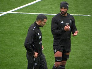 La semaine dernière, le soleil était présent mais quelques jours après Toussaint, c'est un temps de saison qui est présent avec une pluie fine mais continue tout au long de l'entrainement. C'est aussi l'occasion de continuer à prendre ses marques sur le tout nouveau terrain synthétique qui vient d'être livré durant la trêve. Le groupe est assez étoffé avec le retour depuis la semaine précédente des quatre mondialistes géorgiens. Tandis que pour Vasil Lobzhanidze et Otar Giorgadze, il est question de seulement reprendre ses marques, pour Vano Karkadze et Tedo Abzhandadze, il faut s'habituer à un nouveau club. Jeremy Davidson a donné de la voix pendant l'entrainement, preuve que ce déplacement à Castres n'est pas pris à la légère. Les brivistes ont répété leurs enchainements avec la caractéristique du ballon humide à gérer. Tandis que le groupe s'exerçait, Mesake Doge s'est entrainé à part tout comme Irakli Tskhadadze qui recommence à reprendre des sensations sur un terrain de rugby. Touché à une cuisse, So'otala Fa'aso'o a été ménagé, enchainant séance collective et travail spécifique en compagnie de Doge. C'est un mélange de concentration et de sourires qui anime ce groupe briviste qui s'apprête donc à se déplacer à Castres avant de débuter sa campagne européenne. Une campagne où on pourrait voir les deux derniers venus géorgiens qui s'adaptent bien et qui cherchent aussi les conseils de leurs compatriotes le plus souvent possible.