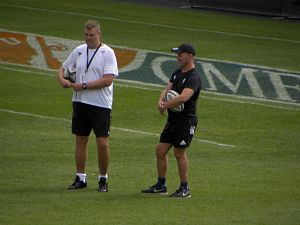 Dimanche, Brive s'est enlevé un gros poids des épaules en décrochant ce premier succès cette saison en Top 14. La machine est en marche mais la machine a besoin de récupérer après les efforts conssentis face à Clermont. Si Victor Lebas, Jan Uys et Rory Scholes ont repris pleinement l'entrainement, d'autres sont restés à travailler en salle (ou en extérieur) : Peet Marais, Thomas Laranjeira et Stuart Olding. Setareki Bituniyata a également repris mais a ressenti une douleur à son genou touché à Pau. Le reste du groupe a donc commencé à préparer ce déplacement chez le leader lyonnais qui ne s'annonce pas de tout repos. Un groupe qui peut compter sur le retour de Karlen Asieshvili, non retenu avec la Géorgie pour la coupe du monde. Après une bonne séance collective durant laquelle Jeremy Davidson n'a pas hésité à donner de la voix (quand il le fait, c'est qu'il est malade !), place aux ateliers : touche et mêlée pour les avants et jeu au pied pour les 3/4. Un atelier qui était dirigé par Alex King, ancien ouvreur des Wasps, de Clermont et de l'Angleterre. Il a aussi entrainé à Clermont, Northampton et plus récemment Montpellier. Il intègre le staff en tant que consultant du jeu au pied et devrait intervenir épisodiquement chaque mois.