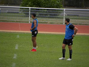 La période des matchs amicaux est terminée et ça se ressent sur le terrain. L'équipe est entrée dans le vif du sujet et Jeremy Davidson donne immédiatement de la voix, tout comme Jean-Baptiste Péjoine. Tandis que Franck Romanet, Rory Scholes et Arnaud Mignardi travaillent à part, le reste du groupe prépare le premier match de la saison à Pau. Des réglages sont encore à travaillé mais l'intensité est là. On sent aussi que la victoire à la dernière seconde du côté de Bordeaux vendredi dernier a permis de boucler les matchs amicaux en confiance avec peut être des joueurs qui ont marqué des points en vue de ce match à la Section Paloise. Absent lors des deux derniers matchs amicaux, Axel Muller est rétabli tandis qu'Alex Dunbar enchaine les séances collectives et prend de plus en plus ses marques dans sa nouvelle équipe.
