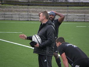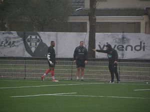 Après deux semaines de chassé-croisé, l'effectif est de retour au complet (mis à part les blessés). Les septistes sont là (sauf Setareki Bituniyata qui est aux Fidji pour une bonne raison : la naissance de son fils il y a quelques jours) et les géorgiens sont là aussi (sauf Otar Giorgadze blessé). C'est sous une pluie fine mais constante que les joueurs se sont entrainés en ce mardi matin. Un entrainement classique de préparation de match avec de l'intensité et de la précision malgré un ballon bien glissant et des entraineurs qui en veulent toujours plus. Samedi, le rendez-vous sera important et il ne faudra pas se manquer et si l'équipe pouvait réaliser une performance comme il y a un peu plus d'un mois à Montpellier, tout le monde devrait être content et cela serait une bonne performance avant de recevoir Agen. Tandis que le groupe s'entrainait, Seva Galala a travaillé en compagnie d'Hayden Thompson-Stringer. Le retour est encore loin, le bras étant toujours immobilisé. La séance se termine comme de tradition par un atelier jeu au pied pour les 3/4 et touche pour les avants.
