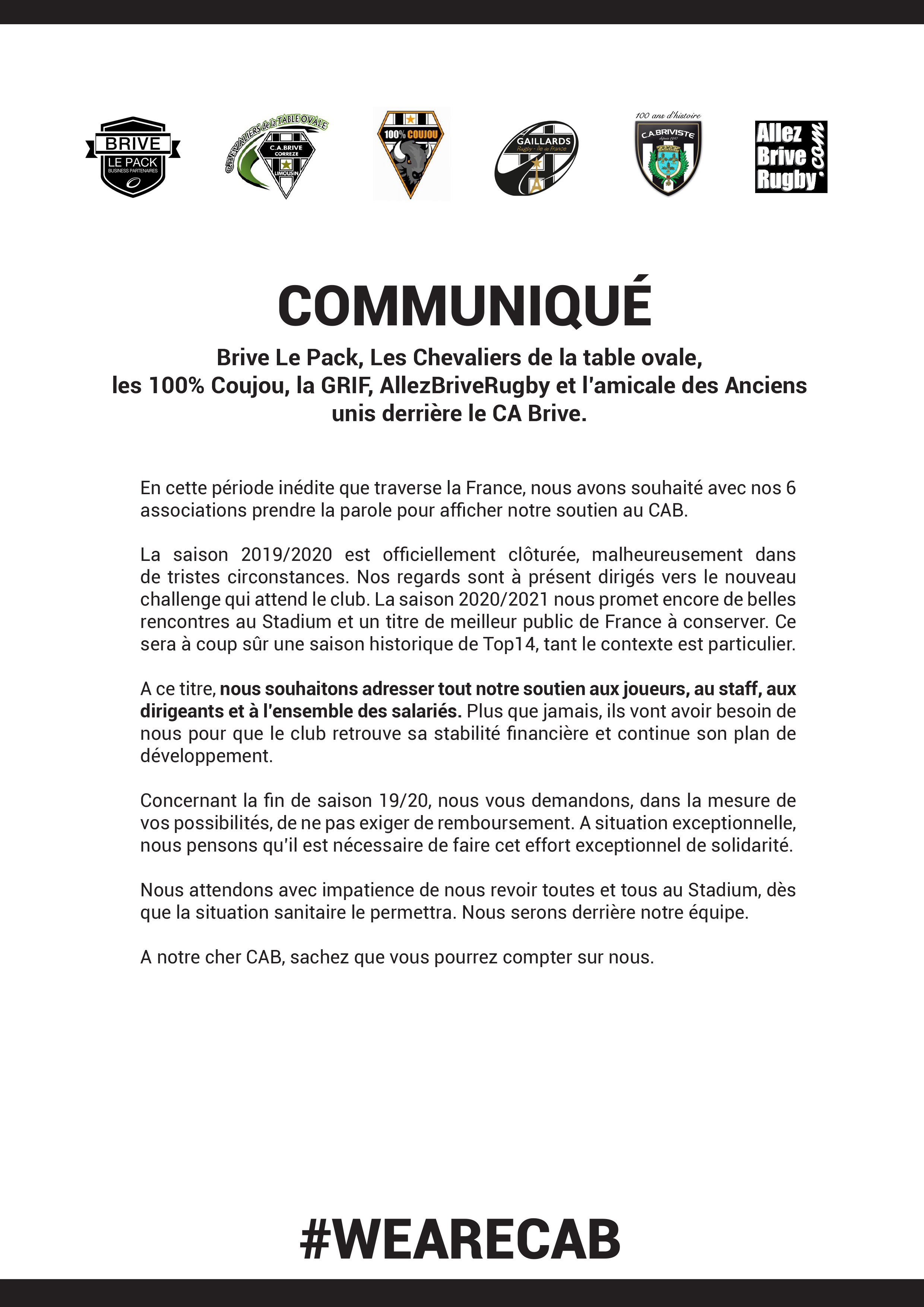 Avec toutes les associations qui gravitent autour de notre club, nous apportons notre soutien au club. Nous demandons également à tous les supporters (à ceux le peuvent) de ne pas demander de remboursement. Sur les réseaux sociaux, nombreux sont ceux qui ont déjà acté cette non-demande et seront là comme chaque saison à soutenir le club.