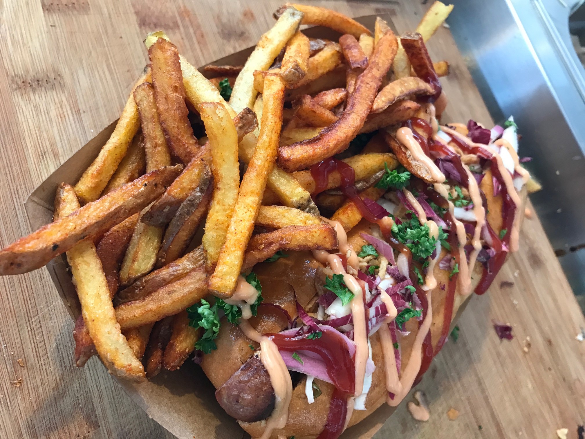 - Hot dog de cul noir du Limousin 6€ (navette artisanale - moutarde violette de Brive - saucisse de porc de Saint Yrieix sauce maison)