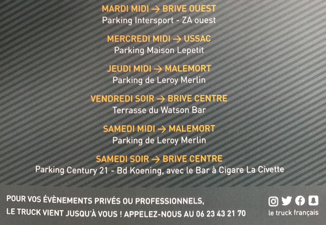 Si vous n'avez pas essayé le Truck Français pour Brive-Bordeaux, vous avez certainement loupé quelque chose. Mais samedi, vous aurez l'occasion de vous rattraper. Durant le match, le food truck vous propose cette carte.