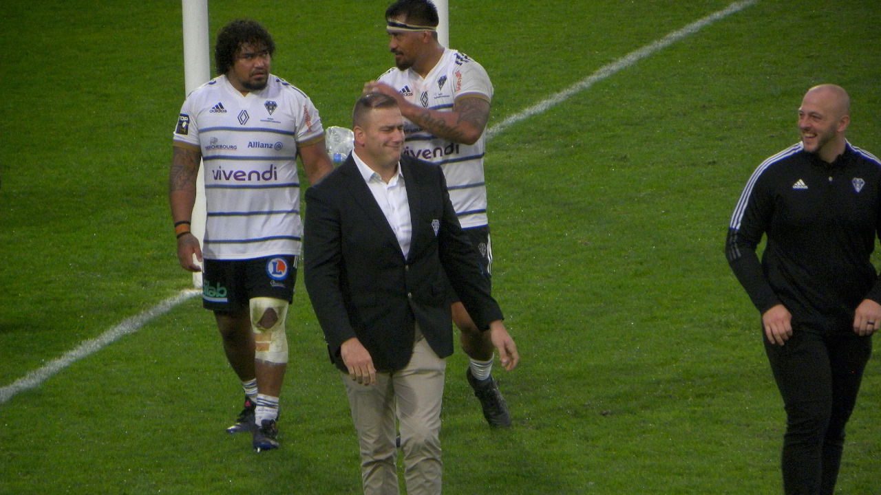 A l'issue de la rencontre, le désormais ancien 2e ligne a effectué un dernier tour d'honneur avant de regagner les vestiaires (par contre pour les prochains partants et retraités, il faudra prévoir du verre incassable !).
