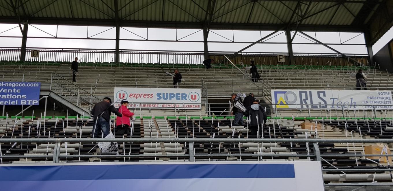 Dimanche, c’est au Stadium où dès 9h00, ils installaient dans les tribunes et tout autour du stade plus de 10 000 drapeaux pour tous les supporters venus en affluence pour ce match.