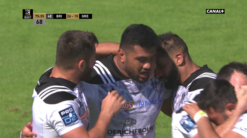 So'otala Fa'aso'o. Sa saison n'a pas été un long fleuve tranquille mais sa finale fut à l'image du garçon : monstrueuse. Par moments, on a eu l'impression de revoir l'ancien porteur de ce numéro 8 : Sisa Koyamaibole. Fa'aso'o a sorti plusieurs grosses percussions sur plusieurs dizaines de mètres. Grenoble n'a jamais trouvé la solution pour arrêter le colosse briviste. Il a été décisif sur deux essais du CAB (le 2e et le 4e). Lors du carton jaune de Soso Bekoshvili, il a pu souffler pendant 10 minutes, le temps de refroidir le moteur un peu et de tout lâcher en fin de match. Sur le dernier essai, il aurait mérité aller à dam afin de se récompenser de son match XXL. Sous ce soleil de plomb, à la 75e, il prend le ballon sur les 40 grenoblois, pivote, élimine 4 défenseurs, casse le plaquage d'un 5e sur les 22 et est stoppé par Germain à seulement 5 mètres de l'en-but. Il sera malgré tout là pour pousser Giorgadze dans l'en-but. Prêté par le Racing cette saison, sera-t-il de retour la saison prochaine ? On va espérer que oui car ça serait bien de revoir ce type de performance en Top 14 de la part de "Sooty".