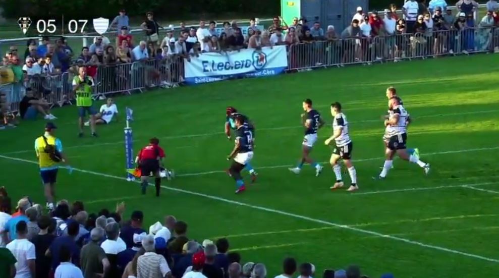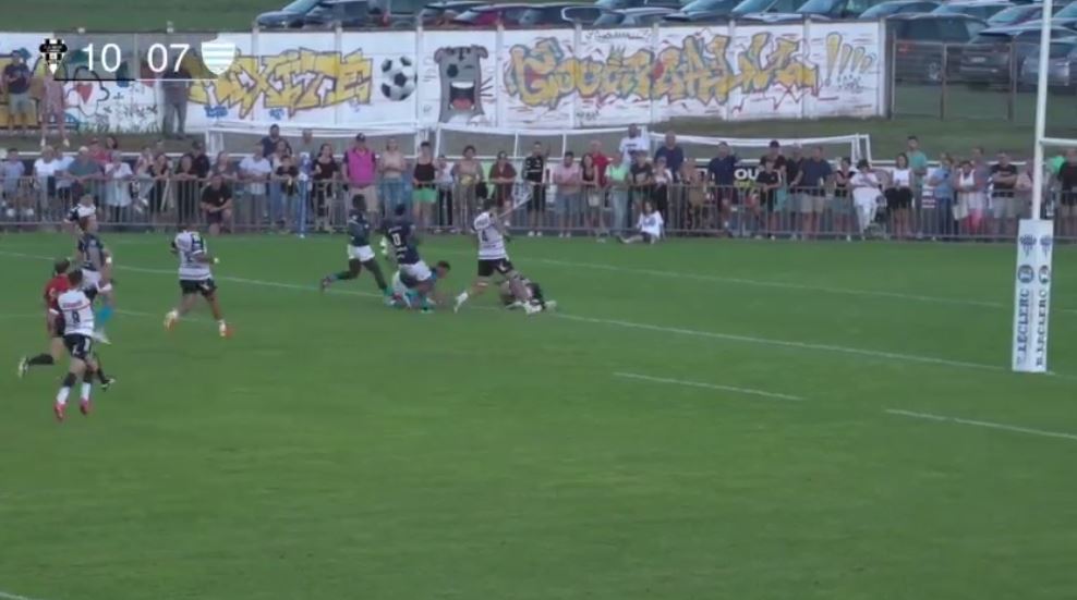 Comme tout match amical, la pause amène son lot de changements des deux côtés. Et Brive frappe d'entrée de jeu. Sur un ballon perdu, Rahboni Warren-Vosayaco tape à suivre loin devant. A la course, le 3e ligne devance tout le monde et va aplatir son essai, le 2e en deux matchs (17-7, 42').