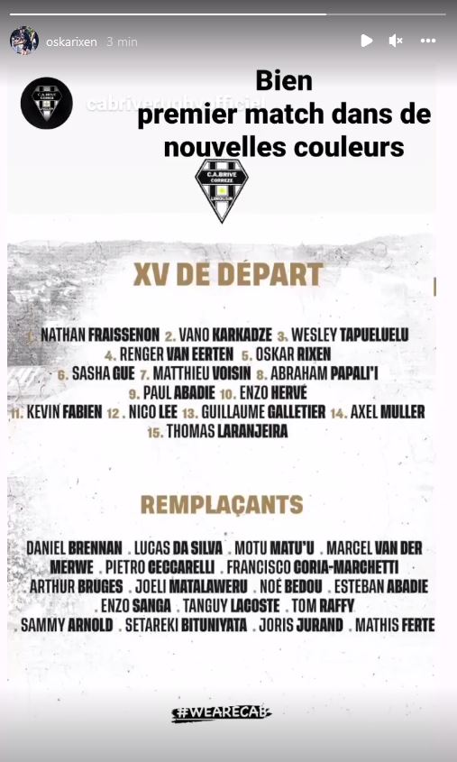 Remplaçants : Brennan - Da Silva - Matu'u - Van Der Merwe - Ceccarelli - Coria-Marchetti - Bruges - Matalaweru - Bedou - E.Abadie - Sanga - Lacoste - Raffy - Arnold - Bituniyata - Jurand - Ferte
