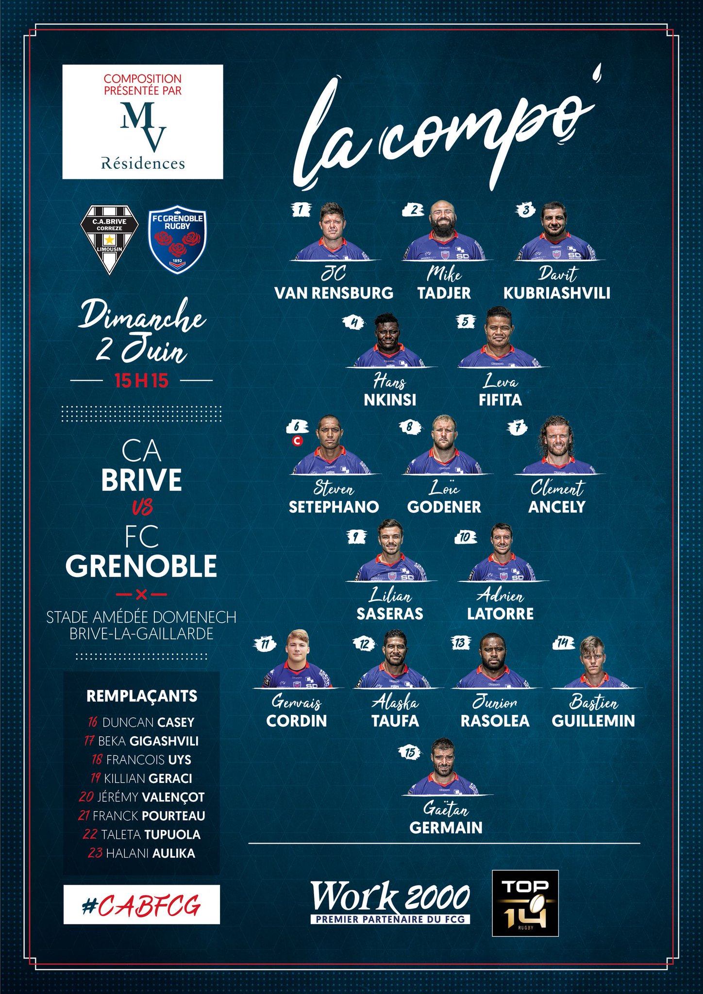 Voici le XV de départ de Grenoble pour le match d'accession à Brive :