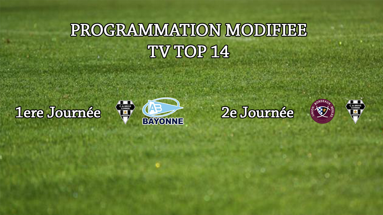 Pour la 1ere journée, initialement programmée le samedi à 18h, la rencontre entre Brive et Bayonne passe au dimanche 6 septembre à 20h45. Elle sera diffusée sur Rugby +.