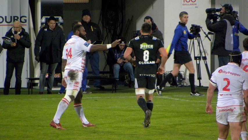 Tout avait si bien commencé. Otar Giorgadze était à la conclusion d'un contre rondement mené par ses 3/4 et le jeune 3e ligne géorgien venait conclure en force. Quelques minutes plus tard, c'est la touche froide. Sa prise de balle est bonne, sa course également sauf que désormais les charges coude en avant sont interdites. Le 3e ligne Sven Bernat Girlando est touché au visage (fracture du plancher orbital) et l'arbitre n'a d'autre choix que de sortir un carton rouge logique.