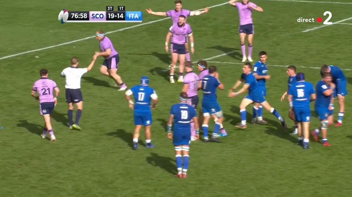 Pour cette dernière journée des 6 Nations, l'Italie se déplaçait en Ecosse. Pietro Ceccarelli disputait son 2e match dans le tournoi, chaque fois en tant que remplaçant. Entré en cours de première période, le temps d'une suspension temporaire, Ceccarelli revient sur le terrain à la 56e minute. Sur une charge à l'heure de jeu, le pilier briviste se tient l'épaule gauche et se fait soigner. Il reste sur le terrain mais son épaule le fait souffrir. Après une nouvelle alerte, il doit céder sa place à la 79e minute, se plaignant de plus en plus de son épaule.