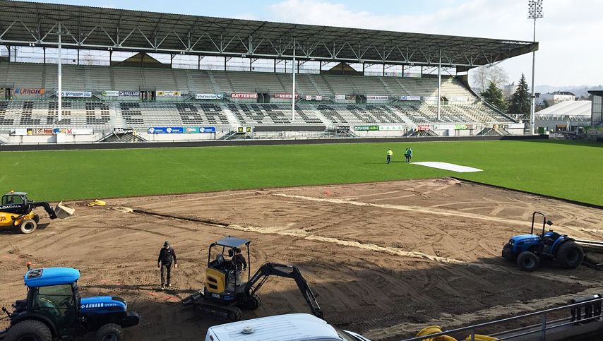 Commencés ce mercredi, les travaux vont durer jusqu'en début de semaine prochaine. Les futures bandes de pelouse n'auront que quelques jours pour s'enraciner avant le match de Pau. La météo annonce en plus de la pluie la semaine prochaine. Les conditions et la saison ne sont pas favorables à un changement de pelouse mais il faut faire quelque chose pour calmer le courroux des instances qui n'ont pas apprécié le report de deux rencontres. Croisons juste les doigts que la pelouse tienne et ne parte pas en lambeaux dès les premières mêlées.