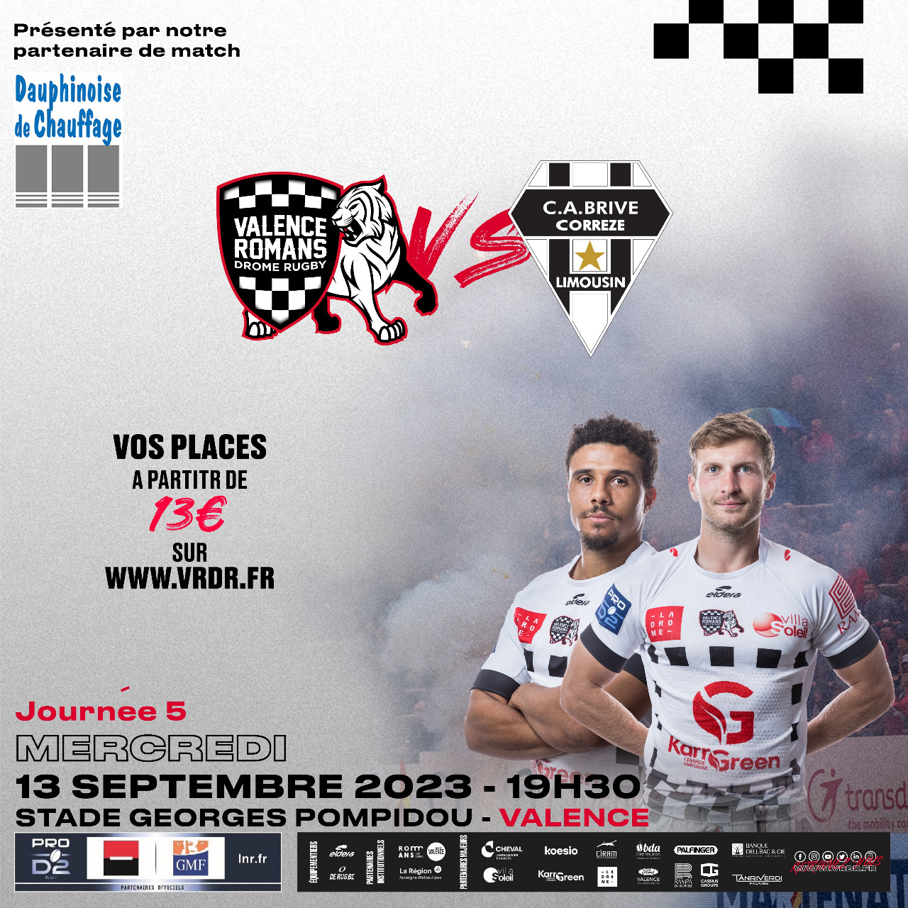 Voici la composition des deux équipes pour le match Valence Romans - Brive (coup d'envoi à 19h30, arbitre : Mr Benjamin Beuriot)