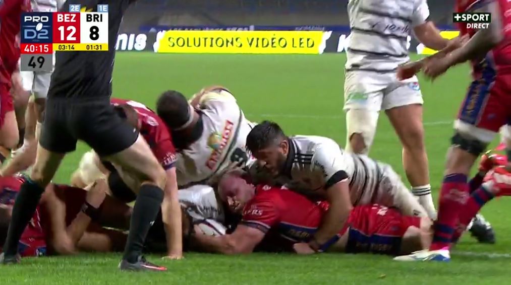 Béziers et Brive vont devoir gérer un autre élément dans la rencontre : le vent. Pas facile de voir qui en a la faveur car il est tourbillonnant. Les premières touches et les premiers lancers sont compliqués à la fois pour Yanis Boulassel et pour Lucas Da Silva. Malgré tout, Béziers se montre le plus entreprenant et joue régulièrement dans le camp briviste. Malheureusement, avec toutes ces touches perdues, ce n'est pas possible de maintenir la pression sur la défense briviste qui se donne un peu d'air. On essaie de trouver des couloirs d'air où le vent va être portant pour faire reculer la défense adverse, ce qu'arrive à bien faire Julien Tisseron. Clément Ancely ne se replie pas assez et se met à la faute, offrant une première opportunité à Jamie Shillcock. Mais le buteur anglais du CAB manque la cible (12'). Brive commence à se faire bouger dans le jeu au sol et les avants brivistes vont devoir trouver des solutions pour contrer leurs homologues. Béziers enchaine avec ses avants dans l'axe, faisant reculer Brive et le rapprochant de son en-but. Paul Recor trouve sur l'aile Pierre Courtaud qui repique dans l'axe et roule sur Asaeli Tuivuaka pour marquer son essai (5-0, 17'). Un peu piqué dans son orgueil, Tuivuaka veut faire parler sa puissance en attaque. Les brivistes enchainent dans l'axe et parviennent à récupérer une pénalité à 35 mètres dans l'axe. Cette fois, ça passe pour Shillcock (5-3, 21'). Sur le coup d'envoi, Brive se met à la faute avec une escorte. Samuel Marques pense réussir la pénalité mais le ballon passe au-dessus du poteau et les arbitres de touche ne valident pas la tentative (22'). Brive joue souvent dans son camp et tente de repousser Béziers dans son camp. A la réception d'un coup de pied, Duran Koevort mystifie Thomas Zénon avant d'accélérer dans son couloir des 5 mètres. Il fixe deux défenseurs avant de servir Otunuku Pauta qui continue à avancer avant de servir intérieur Marques qui marque le 2e essai de son équipe (12-3, 26'). Touché lors de son essai, Marques doit céder sa place mais il n'est pas vraiment ravi de sortir et le fait comprendre à son staff. Thomas Zénon tente de trouver un espace dans la défense biterroise, parvient à s'échapper de deux défenseurs mais tombe sur l'épaule de Shahn Eru. Après vidéo, simple pénalité pour Brive qui voit son joueur sortir sur protocole commotion (30'). Brive est sur les 22 mètres de Béziers mais va perdre le ballon au sol. Derrière, Aminiasi Tuimaba lance le contre et déchire le rideau défensif. Il relance sur plus de 30 mètres avant d'alerter au pied Pierre Courtaud. L'ailier est repris à quelques mètres de l'en-but. Ca enchaine sur la ligne mais sans pouvoir aplatir. Au final, Brive se met à la faute et Alexandre Ricard écope d'un carton jaune (32'). Voulant se récompenser, Béziers prend la pénalité mais Damien Anon manque sa tentative (33'). La supériorité numérique biterroise ne va pas durer très longtemps car Pauta commet deux plaquages sans ballon sur Mathis Galthié et Curwin Bosch. Carton jaune très bête pour le 3e ligne de Béziers (34'). Brive tente bien de faire la différence devant mais contrairement à la semaine passée, il y a de l'adversité et que cela soit sur les mauls ou dans le jeu au sol, Brive est dominé et perd de nombreux ballons. Béziers manque sa sortie de camp et se retrouve immédiatement sous pression. Julien Tisseron met son équipe dans le bon sens avant de trouver le soutien de ses avants et notamment Vakhtang Abdaladze. Dans une position inédite d'ailier, Marcel Van der Merwe est tout proche de marquer mais il est repris à moins de 5 mètres. Béziers se met à la faute pour stopper l'offensive. Brive décide de la jouer à la main. Asaeli Tuivuaka la joue à 5 mètres et va droit devant pour marquer l'essai du CAB (40+1').