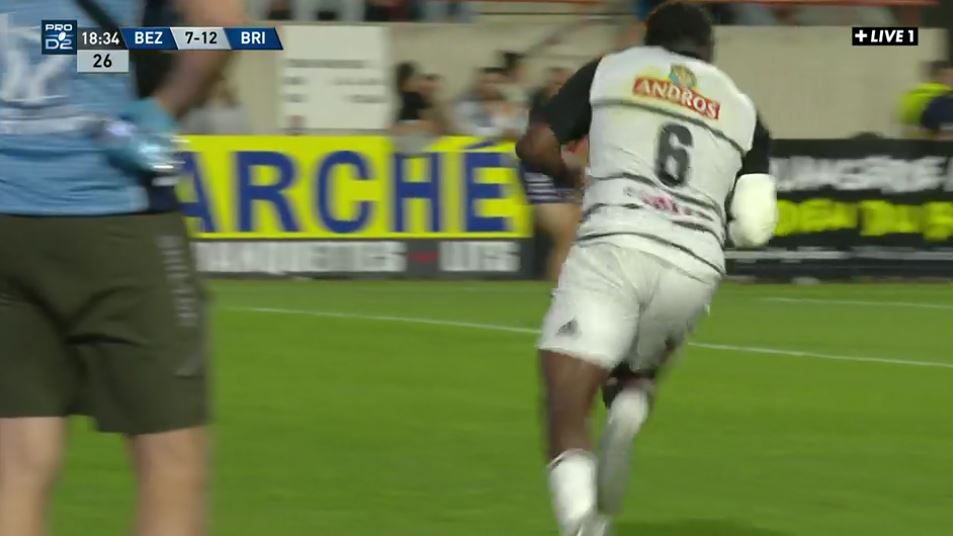 Béziers ne veut pas se faire piéger et accélère en début de seconde période. Pierre Courtaud accélère le long de la ligne de touche et prend le plaquage de Laranjeira avant de servir Lorre qui marque en coin. Mais après vidéo, l'essai est refusé pour un hors-jeu de Réau qui gêne la défense (45'). Pour sa dernière avec Béziers, on sent Gabin Lorre particulièrement motivé pour marquer un essai. Sur un jeu au pied par dessus de Camacho, Lorre grille la défense et pense aplatir mais il est pris sans ballon par Maxime Sidobre. Nouvelle vidéo et cela va être la double peine : essai de pénalité et carton jaune pour le briviste (33-19, 48'). Brive est de retour en infériorité numérique mais cela n'est pas dérangeant tant que cela devient une (mauvaise) habitude. Les 3/4 combinent tandis que Timilaï Rokoduru franchit. Il passe à David Geneste qui accélère et fait un une-deux avec Lewis Noon pour s'offrir son premier essai en pro (33-24, 51').