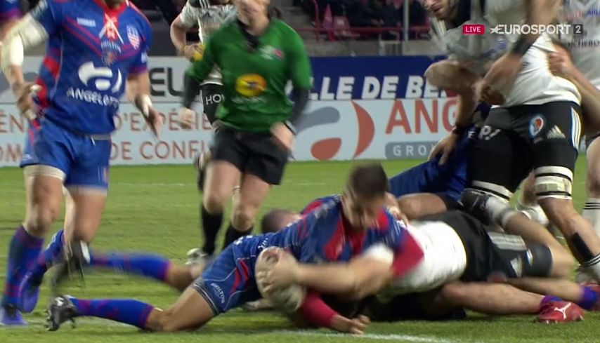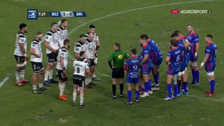 L'arbitrage. A quand la vidéo en Pro D2 ? Dans un championnat qui s'améliore saison après saison, une mauvaise décision peut entrainer beaucoup de choses. Il y a six ans, Brive redécouvrait la Pro D2 et devait appréhender "l'arbitrage maison" : si le public se manifeste après une action, l'arbitre a de bonnes chances de te donner le coup de sifflet. Vendredi, l'arbitrage de Mr Minery peut prêter à discussion sans qu'on arrive à la même déflagration qui secoue actuellement la NFL aux Etats-Unis. Deux décisions retiennent l'attention mais commençons par la dernière. Cody Thomas a le mauvais réflexe de réagir suite à un coup au menton reçu de la part de Daminiani. L'arbitre de touche ne signale pas tout de suite la faute mais lève son drapeau à la suite de la protestation du public biterrois. Mais la première est un tournant de la rencontre. Said Hirèche se fait basculer sur un grattage et retombe sur la tête. Mr Minery adresse un carton jaune parce qu'il estime que le capitaine briviste retombe sur l'épaule. Mais il donne le carton au mauvais joueur : Hoarau (qui crée le regroupement donc compliqué d'être au déblayage en même temps) au lieu de Hagan. Entre 10 minutes en infériorité numérique ou 35 minutes, ce n'est pas la même chose. Pour poursuivre son développement, l'arbitrage de la Pro D2 doit se rapprocher de celui du Top 14, avec la vidéo et une meilleure maitrise des rencontres.