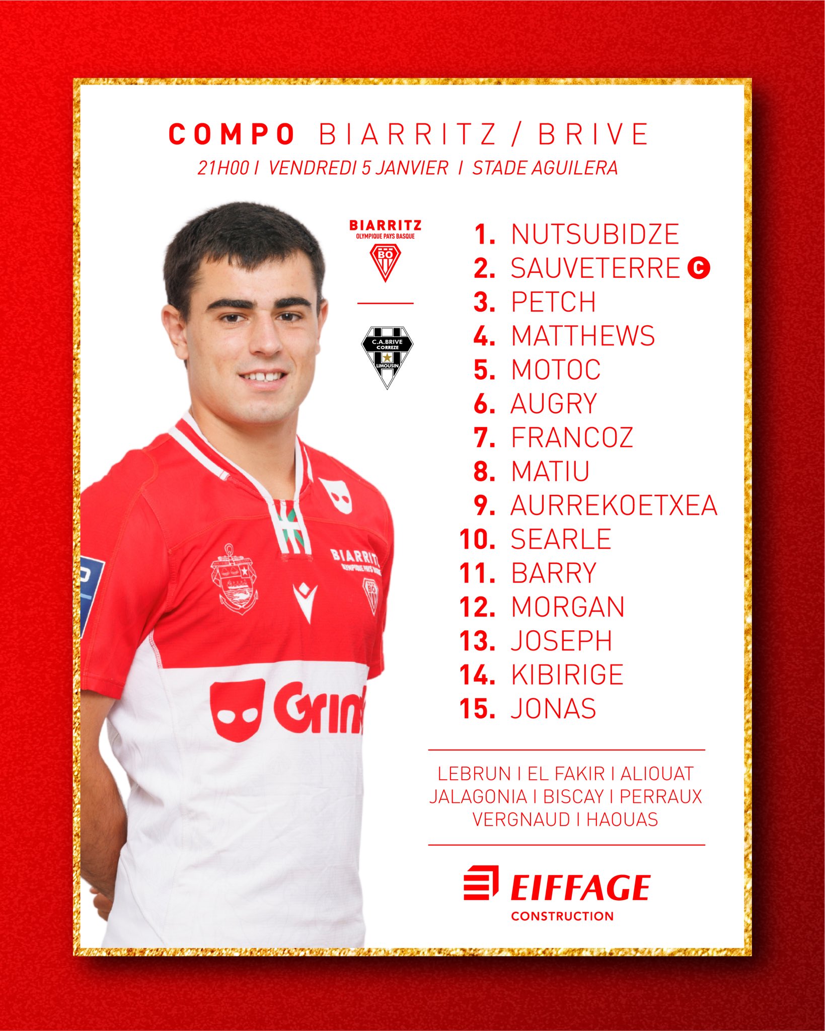 Voici le XV de départ de Biarritz pour la réception de Brive :