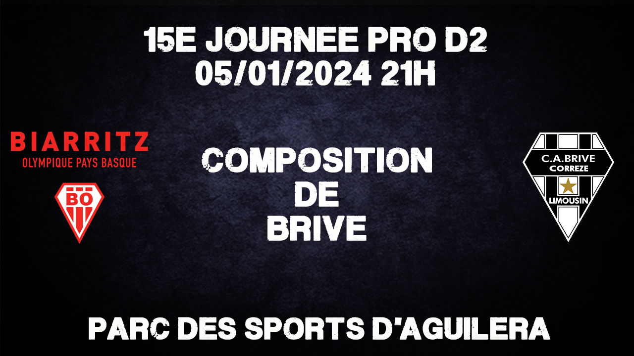 Pour ce déplacement, Brive aligne plusieurs joueurs sur le retour. Vakhtang Abdaladze retrouve la titularisation à droite de la première ligne. Commotionné à Colomiers, Julien Delannoy est de retour en 2e ligne. Retief Marais et Sasha Gué encadrent Rahboni Warren-Vosayaco en 3e ligne. Plus vu depuis Dax, Jackson Garden-Bachop revient dans le groupe et sera l'ouvreur titulaire. Asaeli Tuivuaka est titulaire à l'aile. A noter les premières apparitions dans le groupe de Benjamin Boudou et Asier Usarraga.