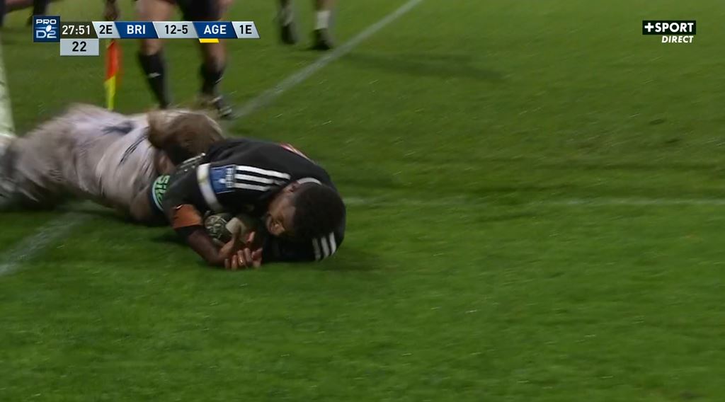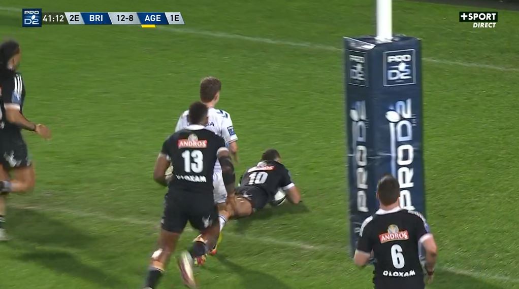 Il avait fallu cinq minutes pour voir Brive marquer un essai en première période. Il en faudra encore moins en seconde période. Alors que Brive est en attaque sur les 40 mètres agenais. La défense est bien en place mais un joueur va s'occuper de tout. Curwin Bosch joue le jeu qu'il doit jouer avec feinte de passe et accélération dans l'intervalle créée. Il crochète le dernier défenseur et s'en va marquer au milieu des poteaux (19-8, 42').