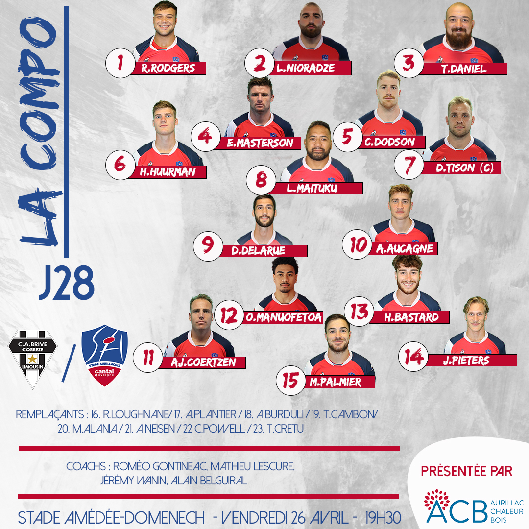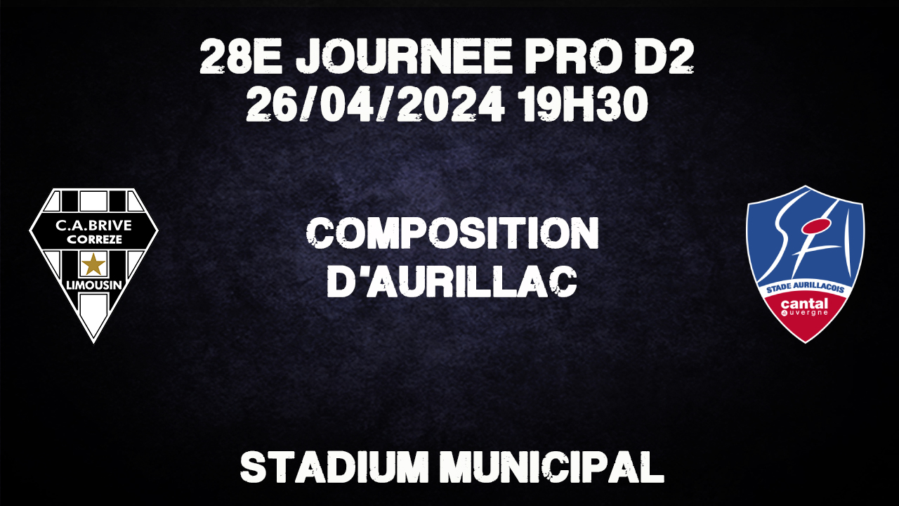 Pour ce déplacement, Aurillac ne peut compter sur Backhouse (cheville), Rolland (cheville), Yabaki (cheville), Slamani, Moala, Jongejan, Shvangiradze (cheville) et Mchelidze (cuisse).