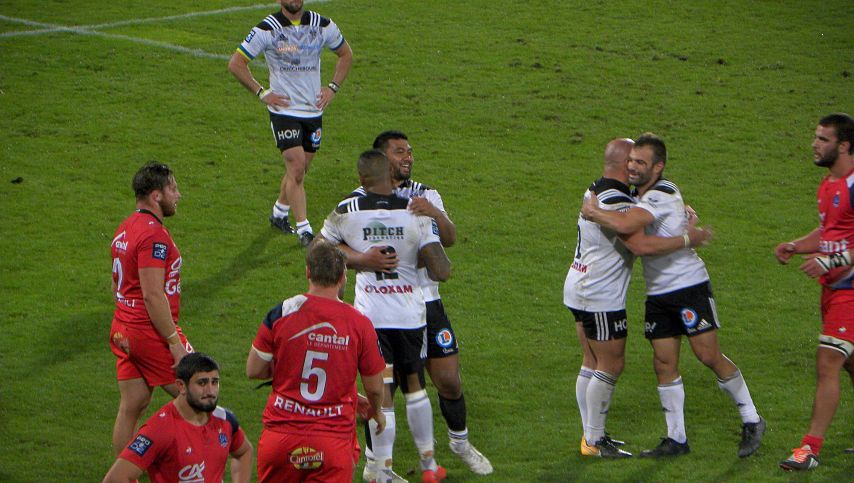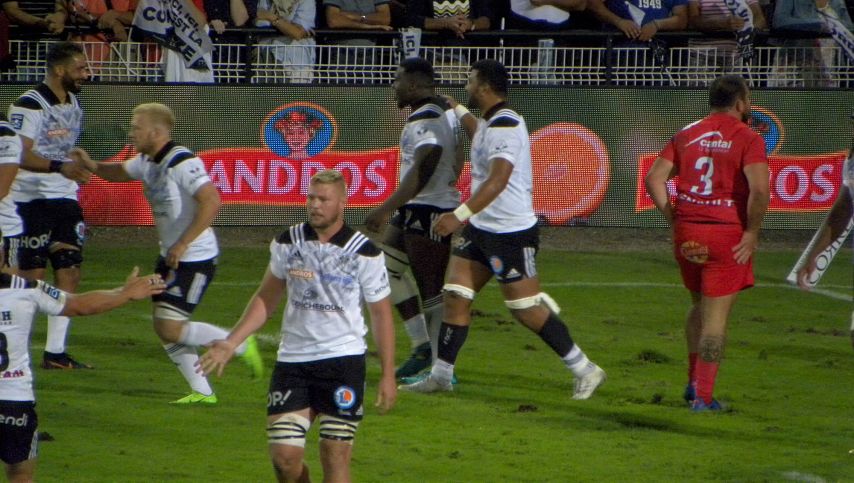 Aurillac : 2 essais de Ojovan (50') et Adendorff (61') ; 2 transformations de De Wet ; 2 cartons jaunes pour Nostadt (34') et Roussel (35')