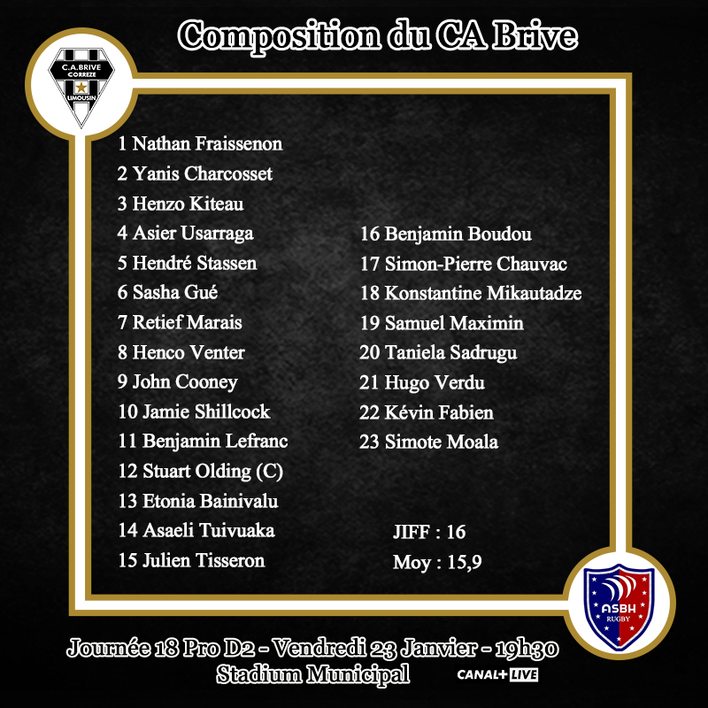 — CA Brive Rugby (@CABCLRUGBY) January 23, 2026