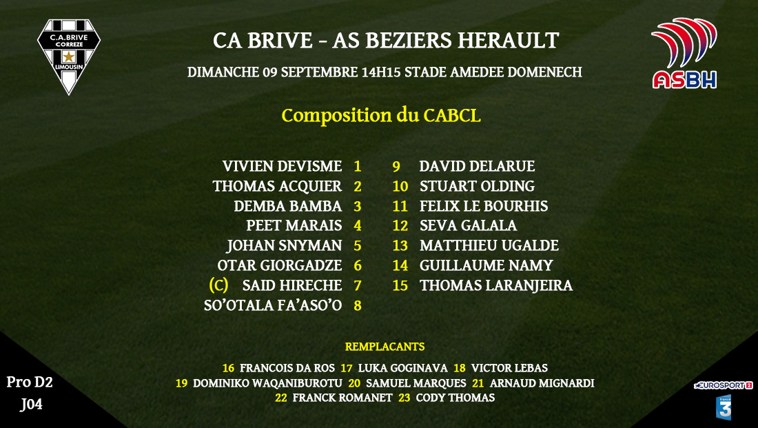 Sortant d'une belle performance à l'extérieur à Biarritz, Brive veut enchainer contre Béziers et terminer de la meilleure des façons ce premier bloc en Pro D2. Les brivistes attendent un match référence pour lancer la saison.