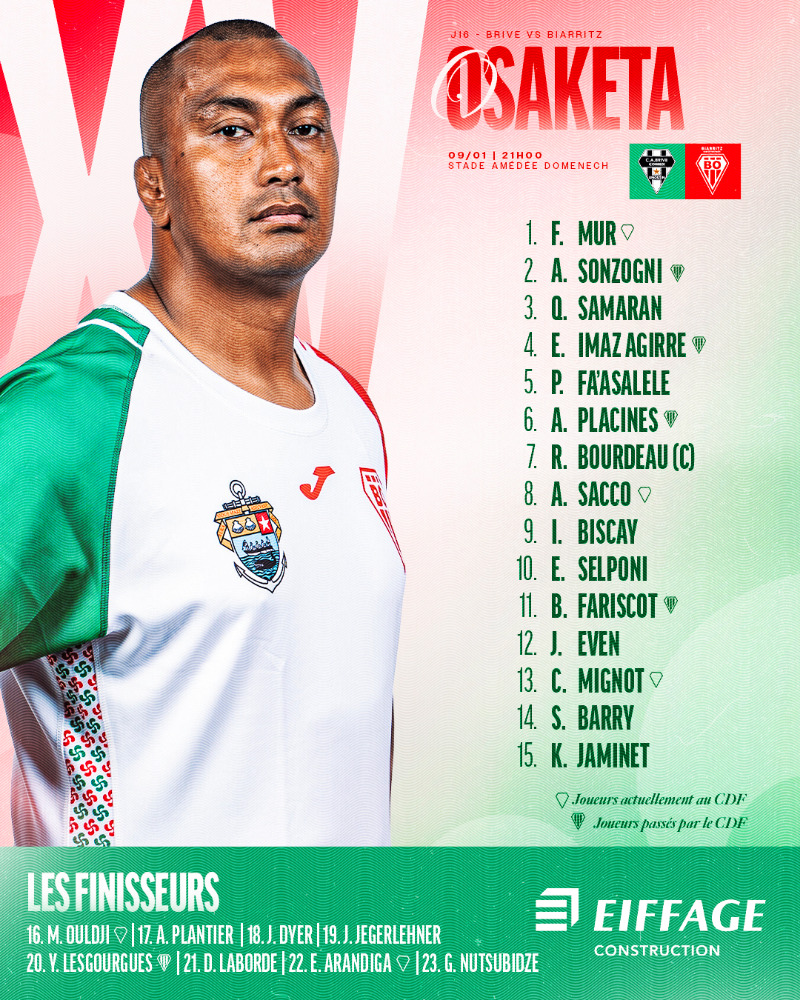 Voici le XV de départ de Biarritz pour le déplacement à Brive :