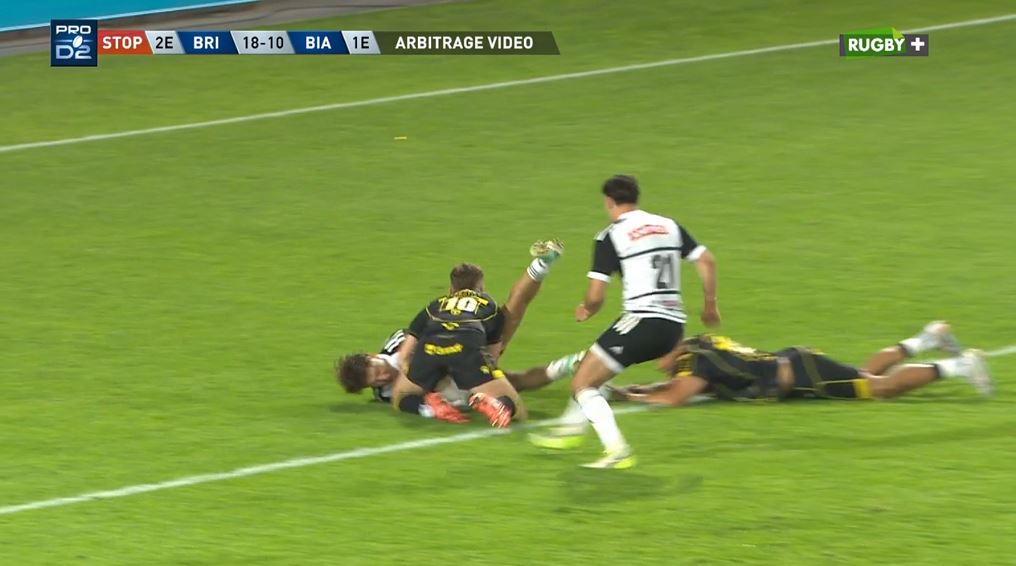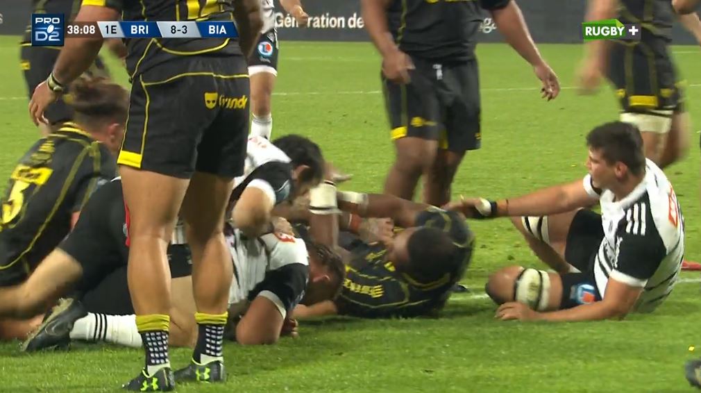 Brive doit accélérer et enfin se lancer dans la rencontre. Benjamin Boudou met le danger dans la défense biarrote qui se met à la faute. Giorgi Nutsubidze écope d'un carton jaune (67'). Peut être le tournant du match ? Quelques instants plus tard, à 5 mètres, Brive a une pénalité et Taniela Sadrugu décide de la jouer rapidement à la main. Le 3e ligne fidjien fait parler sa puissance pour marquer le 3e essai (27-10, 70').