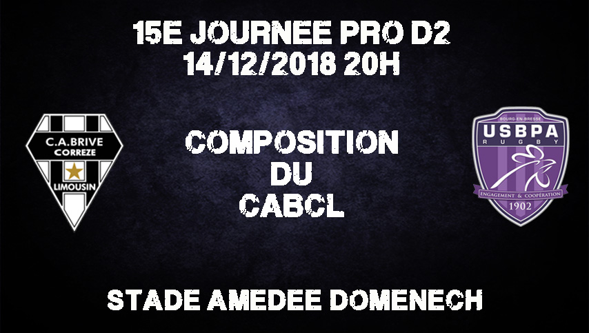 Voici le XV de départ du CA Brive pour la réception de Bourg en Bresse :