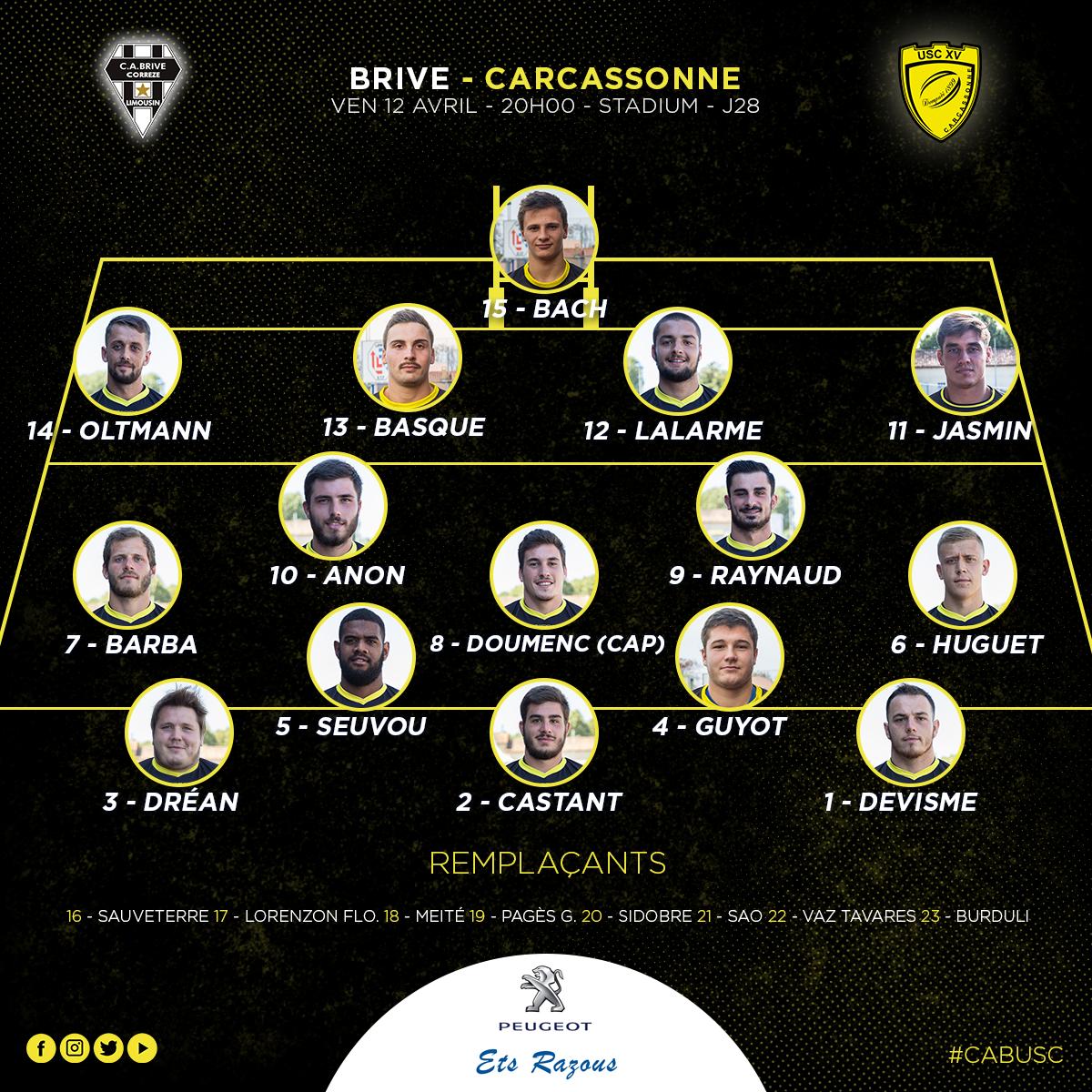 Voici le XV de départ de Carcassonne pour le déplacement à Brive :