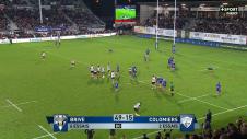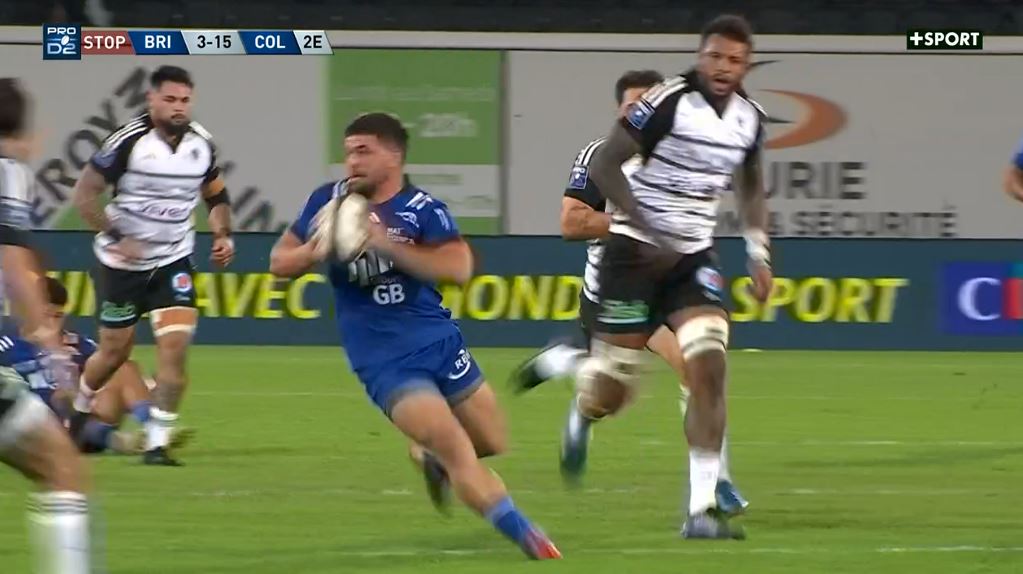 La première période. Brive était attendu au tournant en première période après des dernières sorties difficiles. Mais Brive est resté sur la même longueur d'onde durant les 40 premières minutes. Nous avons vu un Brive peu inspiré offensivement, ne se créant pas d'occasions d'essai, ne parvenant pas à entrer dans les 22 mètres de Colomiers et un Brive en difficulté défensivement. Colomiers a déroulé son jeu et cette vitesse et ces enchainements ont permis de trouver de nombreuses brèches dans la défense briviste. Un joueur en particulier s'est fait remarquer : le talonneur argentin Pablo Dimcheff. A la pause, il avait effectué autant de mètres parcourus que l'ensemble des brivistes. Heureusement que Colomiers avait des difficultés en conquête et dans quelques transmissions sinon il y aurait sûrement plus de 9 points de retard pour Brive. Finalement, compte tenu des problèmes, Brive est resté dans le match et avait pas mal de temps pour revenir au score.