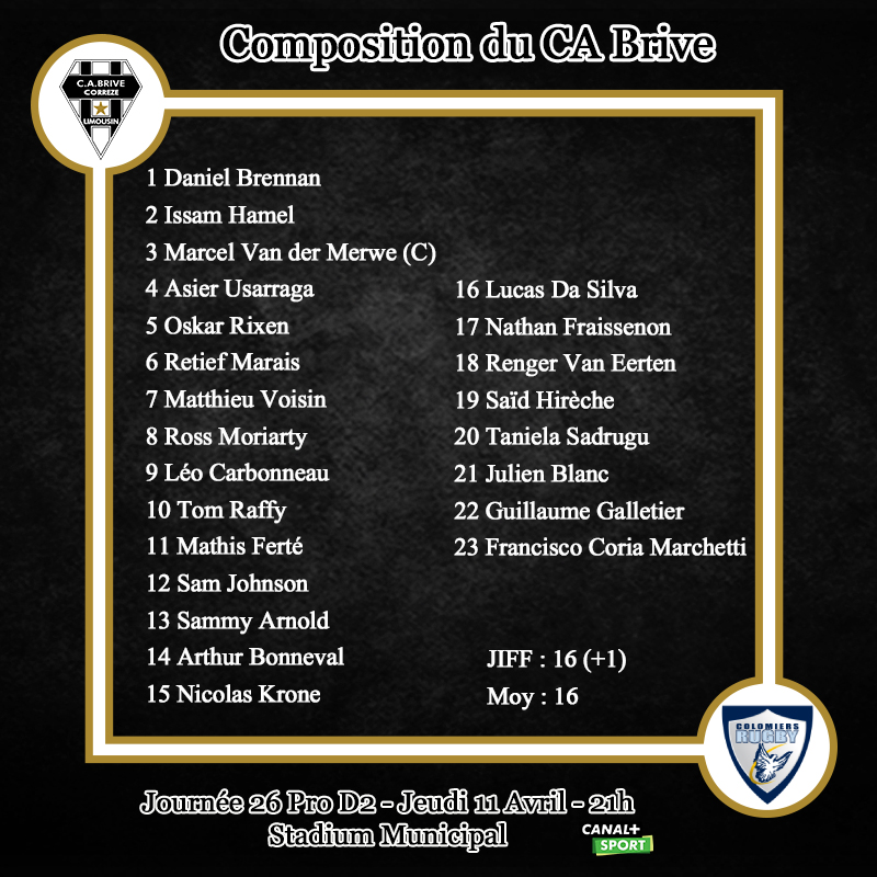 Voici le XV de départ du CA Brive pour la réception de Colomiers :