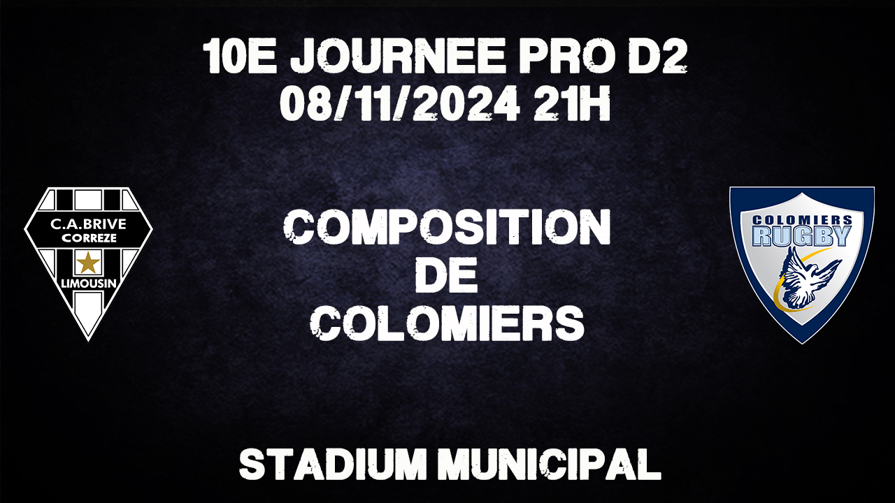 Colomiers est une équipe à sa place en Pro D2, un bon bastion de cette division, qui travaille bien avec ses moyens. Dans l'immense ombre du Stade Toulousain, la Colombe connait un très bon début de saison cette année. Cela a commencé par une victoire à Mont de Marsan et 4 victoires lors des 5 premiers matchs. Après un petit coup de mou (2 défaites et 1 nul), Colomiers a remporté le derby face à Montauban, de quoi être 6e au classement après 9 journées. On pourrait même dire 5e ex-aequo et cela tombe bien car les deux équipes à égalité s'affrontent, Colomiers rendant visite à Brive. Même si le CAB connait quelques turbulances, les columérins s'attendent à une réaction briviste et à un match difficile. Mais Colomiers veut s'appuyer sur son parcours à l'extérieur (2 victoires et 2 bonus défensifs) pour réussir à faire un résultat en Corrèze.