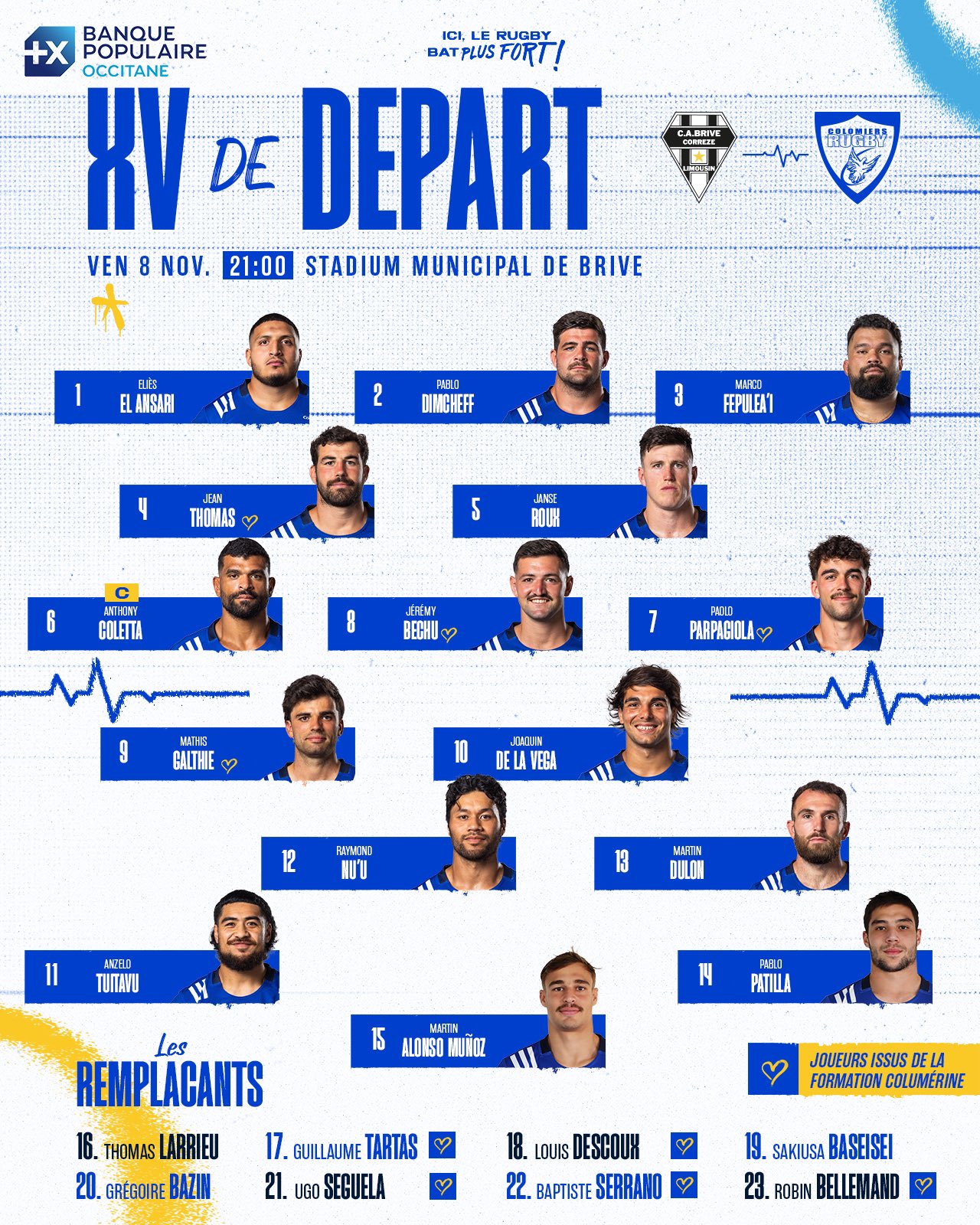 Voici le XV de départ de Colomiers pour le déplacement à Brive :