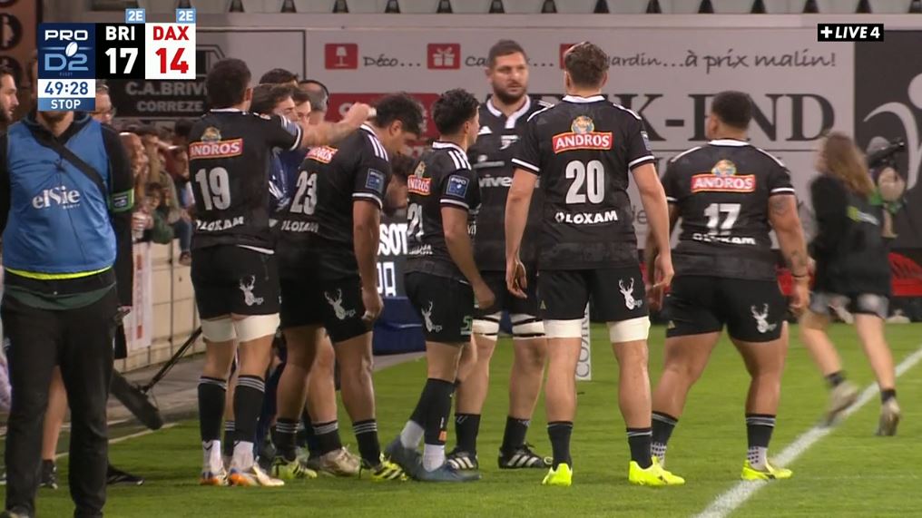 A égalité, Dax est devant. Mais qu'est ce qu'ont toutes ces équipes à jouer tous les ballons et à les déplacer dans toute la largeur du terrain ? A croire qu'elles veulent faire souffrir le CAB ! Plus sérieusement, Dax était venu pour jouer et a joué. Parfois, cela a été du bazar désorganisé et cela a été payé cash en première période avec l'essai de Bosch. Mais quand cela a voulu sourire, les essais sont arrivés notamment avec Naseara et Gatelier. Si on prend la grande partie de chaque période qui a notamment été passé à 15 contre 15, c'est bien Dax qui mène 24 à 13. Sans oublier une pénalité face aux perches manquée. Brive a eu du mal à trouver le bon rythme pour freiner le rythme dacquois mais il a surtout souffert au niveau de sa couverture du terrain pour empêcher le jeu au pied derrière la ligne de défense. Cela a été réalisé à de nombreuses reprises et Dax en a profité pour jouer profondément dans le camp briviste. Si on oublie un peu ces dernières minutes dingues qui n'arrivent pas à tous les matchs, on peut se dire que Brive a eu un peu chaud et que la pièce est tombée du bon côté pour le CAB.
