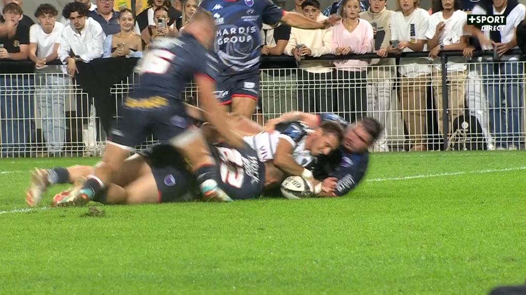 Dridi met le feu dans la défense en cassant plusieurs plaquages. L'ailier passe au sol mais manque de patience en voulant faire une passe après contact. En-avant et ballon rendu à Brive. A un peu plus de 5 minutes de la fin, on revoit une scène de la saison dernière, face au Stade Français ! Alors que Wesley Tapueluelu est sorti sur blessure, Vakhtang Abdaladze se blesse immédiatement après sur une touche en soulevant son sauteur. C'est la panique sur le bord de la touche, entre le staff briviste et les 4e et 5e arbitres. Carence ? Pas carence ? Finalement, pas de carence ! Ouf ! Blanc use de son jeu au pied depuis son entrée pour faire reculer la défense de Grenoble. Sur son dernier jeu au pied, Fusier est sous pression et dégage en catastrophe, offrant une touche à 5 mètres. Le lancer est assuré et le maul avance. Les avants insistent en se recentrant. Blanc sent le coup, feinte la passe et trouve le trou dans la défense pour le 6e essai, celui de la victoire (38-26, 79').