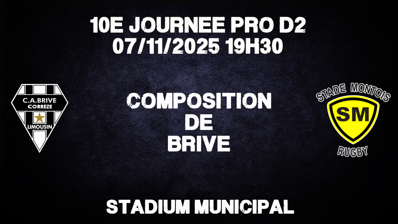 Pour cette réception, Brive continue de modifier son XV, notamment en raison des blessures. Lucas Da Silva démarre au talonnage. Alexandre Ricard et Konstantine Mikautadze sont titulaires en 2e ligne. Retief Marais et Samuel Maximin entourent Taniela Sadrugu en 3e ligne. Maxime Sidobre est à la charnière. Erwan Dridi et Julien Tisseron prennent place sur le trident arrière.
