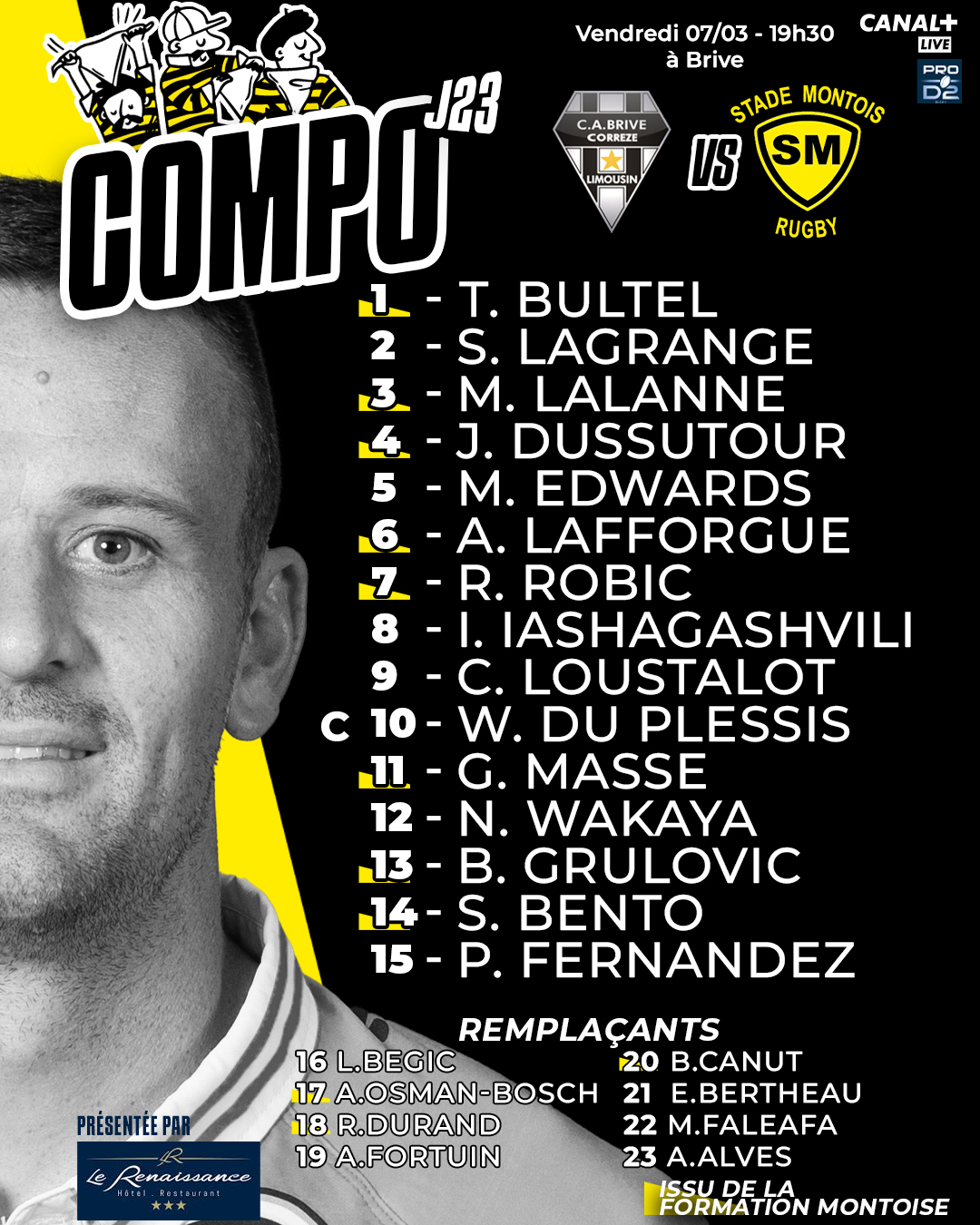 Voici le XV de départ de Mont de Marsan pour le déplacement à Brive :