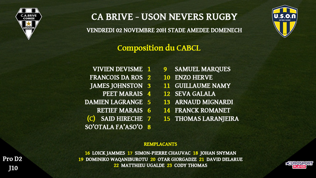 Voici le XV de départ du CA Brive pour la réception de Nevers :