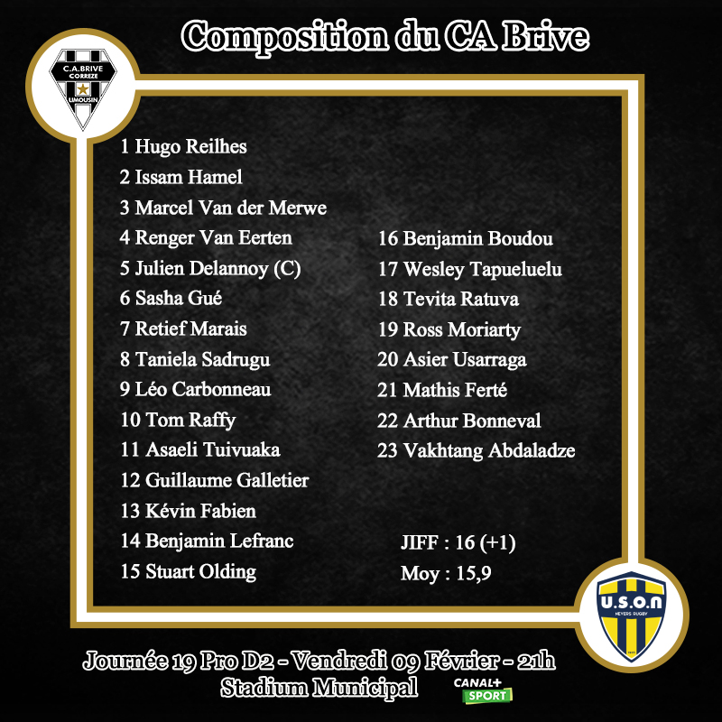 Voici le XV de départ du CA Brive pour la réception de Nevers :