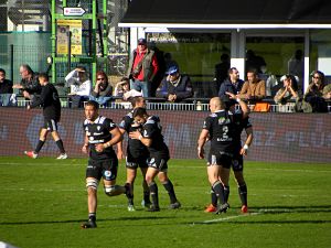 Oyonnax : 2 essais de Giresse (35') et Gondrand (60') ; 2 transformations et 2 pénalités (44', 50') de Botica ; 2 cartons jaunes pour Taieb (17') et Geledan (63')