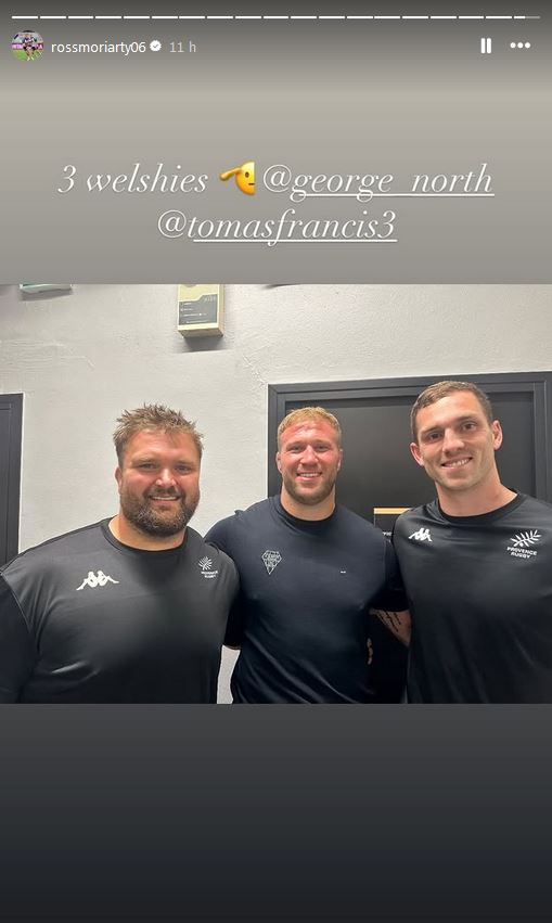 Ross Moriarty, blessé, a retrouvé ses coéquipiers de la sélection galloise dans les couloirs du Stadium.