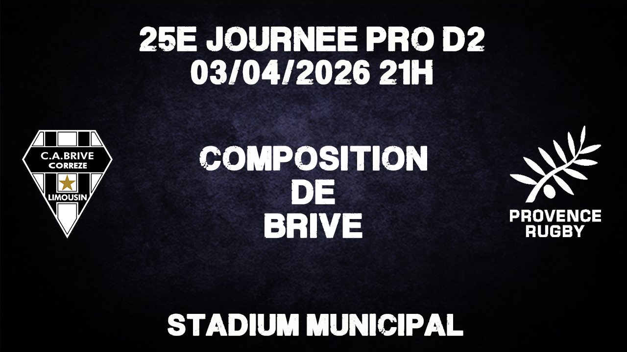 Pour cette réception, Brive garde quasiment le groupe qui a gagné du côté de Soyaux-Angoulême avec seulement deux changements : un dans le XV et un sur le banc. Ainsi, Irné Herbst remplace Konstantine Mikautadze en 2e ligne tandis que Yann Peysson remplace Taniela Sadrugu sur le banc.